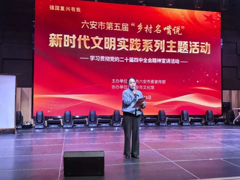 12月16日,安徽省六安市第五届“乡村名嘴说”新时代文明实践系列主题活动——学习贯彻党的二十届四中全会精神宣讲活动在六安市文化馆举行。活动以群众喜闻乐见的文艺形式宣讲党的创新理论,推动党的二十届四中全会精神传遍六安红色热土,为六安市奋进“十五五”新征程凝聚强大精神力量。